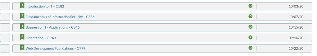 I have now completed 14 credits (a full semester) in 3 weeks at Western Governor’s University. Almost every night, I work on school from 7pm to 12:30am. Mainly, I was able to test out of almost all of the classes from teaching myself security concepts, html5, CSS, python, and basic coding concepts for fun in the past few years. I am on track to graduate with my Bachelor’s Degree in less than a year as well as earn 11 industry-level certs in the field of Cybersecurity/Information Assurance.