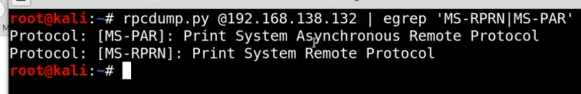 – rpcdump.py @<ip> | grep ‘MS-RPRN | MS-PAR’